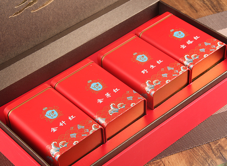 Ich habe alles, was Sie für Dianhong-Vier-Schätze-Tee begehren. Goldenes Trieb, Baota-Rot, Ye-Sheng-Rot, Goldnadel-Rot, vier Teesorten, eine Box für besondere Genüsse. Jede Teesorte ist ein Qualitäts-Tee, mit Honigaroma, vollmundig und ölig, eine ausgezeichnete Wahl für Geschenke.