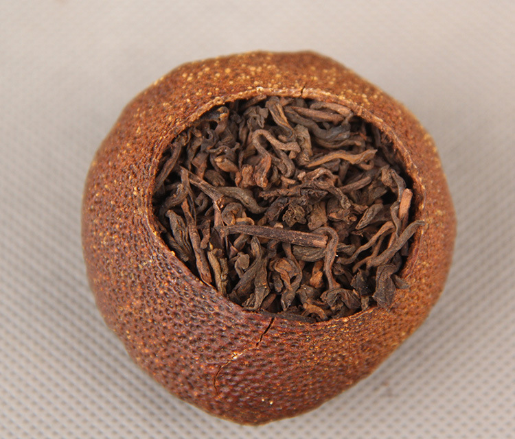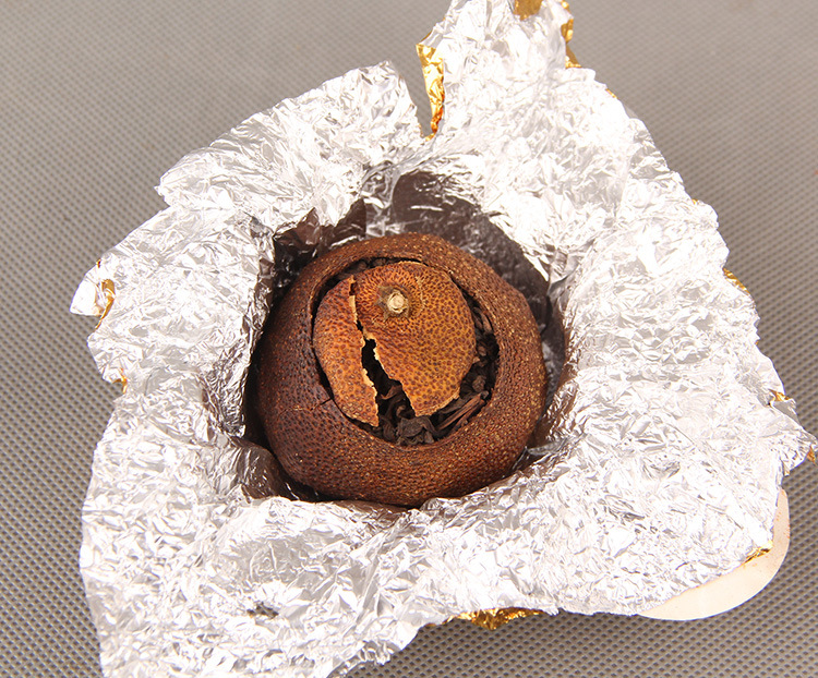 Pu'er ripe tea loose leaf, Citrus Pu'er tea, Aged Citrus Pu'er tea, Xin Hui, Golden Citrus Pu'er tea leaves