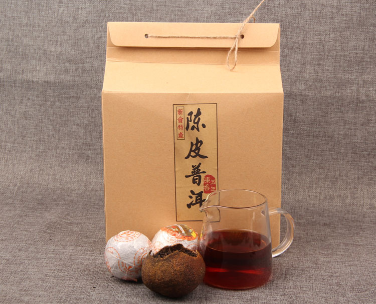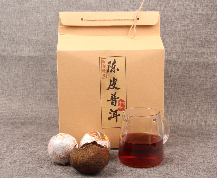 Xinhui aged citrus is renowned, and Yunnan Pu'er has a long history. It is made from authentic Xinhui aged citrus peel and pure Yunnan Pu'er tea, using Pu'er tea production techniques (both traditional and innovative), creating a perfect combination of Xinhui aged citrus and Yunnan Pu'er tea, complementing each other. It has citrus aroma, sweet and mellow Pu'er flavor, and becomes more fragrant with age, resistant to brewing and rinsing, with bright tea color and smooth taste. Drinking this tea regularly promotes saliva production and a sweet aftertaste, combined with the powerful citrus peel aftertaste. It integrates the common characteristics of both.