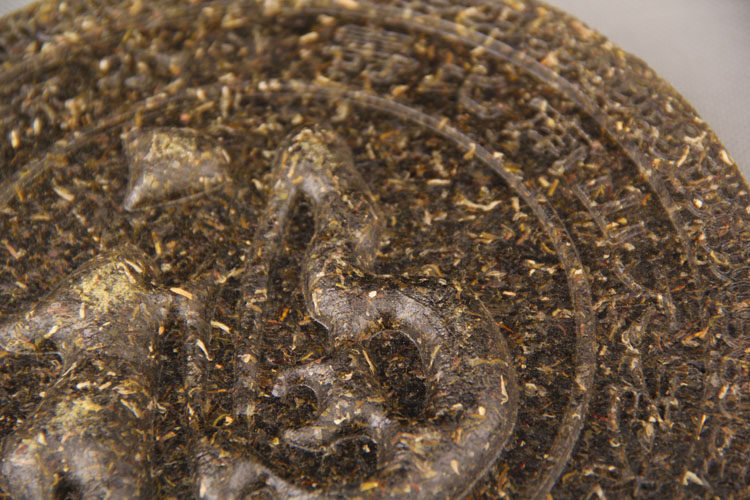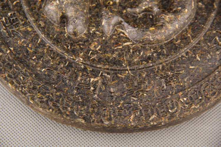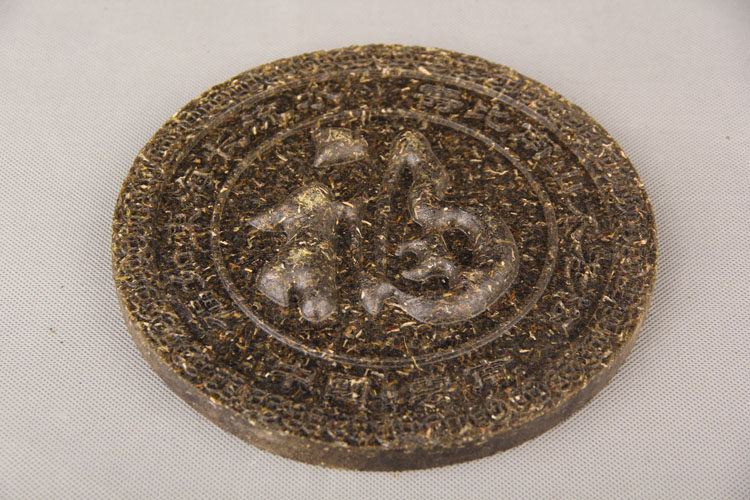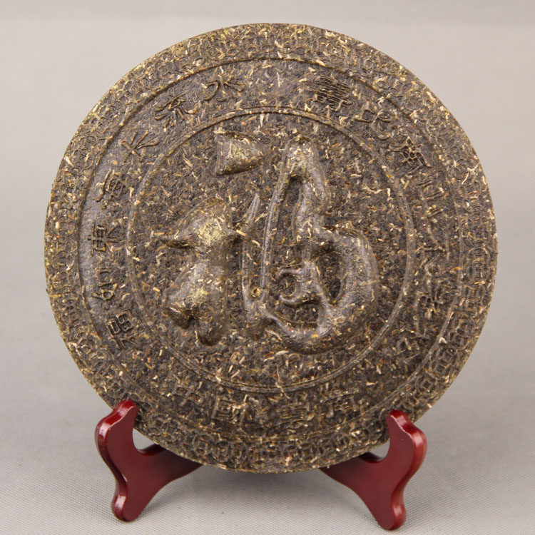 【Nom du produit】Sculpture artistique en thé Pu-erh, objet de collection, Caractère de chance/Ancien chemin du thé et des chevaux