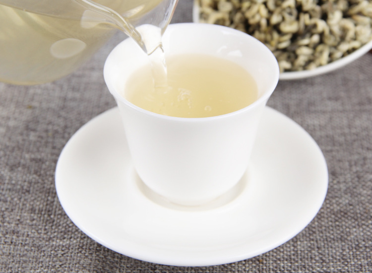 Снежный нефритный виток: Высокогорье, длительное солнечное освещение, большая суточная разница температур благоприятны для роста чайных растений. Зеленый, без добавок, традиционное ручное изготовление, полностью видны белые ворсинки.