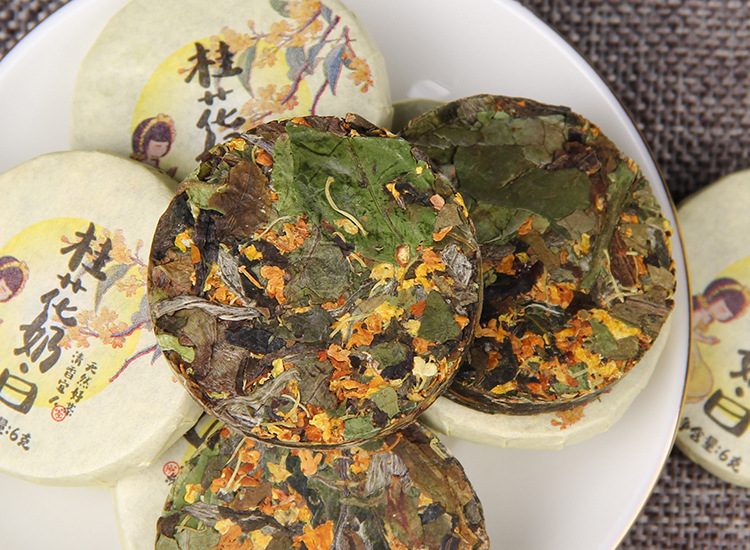 白牡丹白茶小饼,云南产,桂花香。
