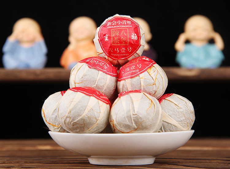 小青柑 18颗搭配礼盒(红色、绿色随机,也可指定)新会天马一号陈皮 + 8年高品质的宫廷。小青柑,大功效,柑皮油润有光泽,柑香浓郁,香甜醇滑。